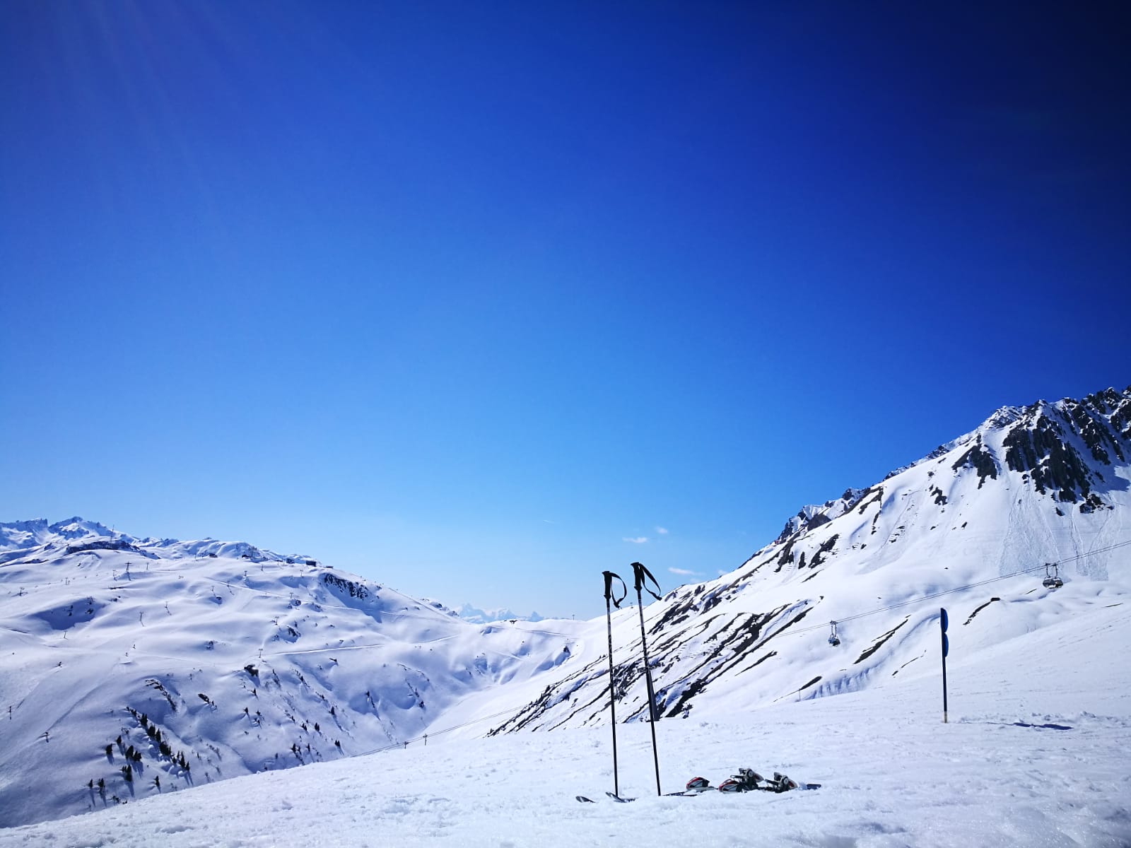 Dank unseres VIP Parkplatzes direkt vor dem Lift waren wir in der Früh gleich die ersten auf der Piste und konnten diese ganz besondere Skisaison 2020/21 vor dem herrlichen Panorama des Arlbergs beschließen - nicht ohne vorher noch einen Einkehrschwung bei einer richtigen Skihütte, mit richtiger Terrasse, Sonnenliegen und einem netten Kellner zu machen - dem ersten und dem letzten "echten" Einkehrschwung in diesem Winter...